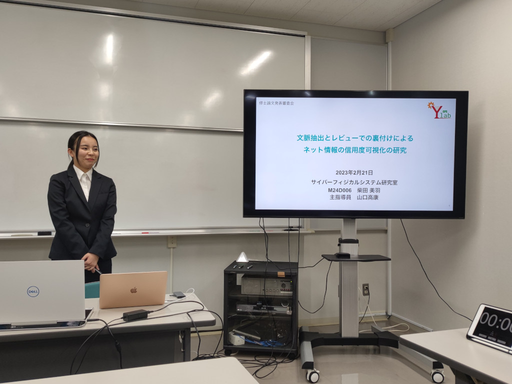 学会発表に向けて追い込みをしていた同期3人と比べ,夏休みの間に体調を崩してダウンしていた私でしたが,11月の修士論文中間審査の頃にはなんとか追いつきました.この頃は土日も研究室で4人揃って追い込みをしたなぁ….修論のドラフトと発表スライドを作成し,印刷してみるとミスが見つかるの繰り返し.修正を発表日の朝まで続けて全員ギリギリまで頑張り,納得のいく発表をしました😃